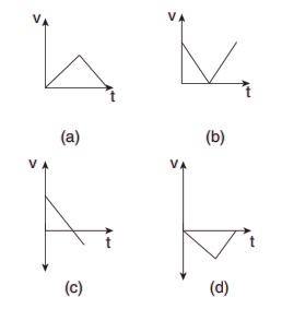 8. v என்ற திசைவேகத்துடன் பந்து ஒன்று செங்குத்தாக மேல்நோக்கி எறியப்படுகிறது அது t நேரத்தில் தரையை அடைகிறது. பின்வரும் எந்த v-t வரைபடம் இவ்வியக்கத்தினை சரியாக விளக்குகிறது.