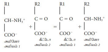 குளுட்டாமிக் அமிலத்திலுள்ள அமினோ தொகுதியானது பிற கீட்டோ அமிலத்தின் கீட்டோ தொகுதிக்கு மாற்றப்படும் நிகழ்ச்சி அமினோ மாற்றம் எனப்படும்.