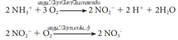 அம்மோனியாவானது (NH3) முதலில் நைட்ரோசோமோனாஸ் பாக்டீரியத்தின் உதவியால் நைட்ரைட்டாக (NO2-) மாற்றம் அடைகிறது. பின்னர் இது நைட்ரேட்டாக (NO3-) நைட்ரோபாக்டர் என்ற பாக்டீரியத்தினால் மாற்றம் அடைகிறது.