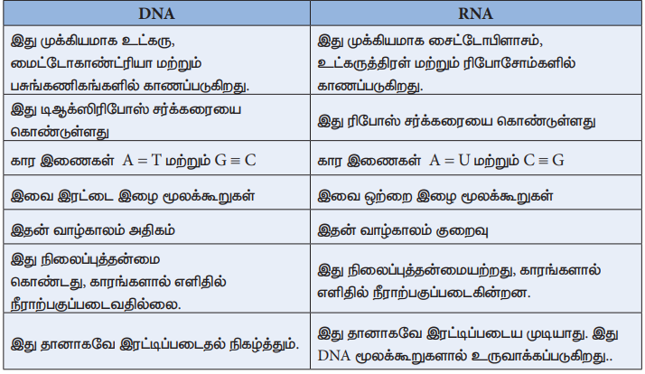 அட்டவணை 14.3 DNA மற்றும் RNA ஆகியவற்றுக்கு இடையேயான வேறுபாடுகள்