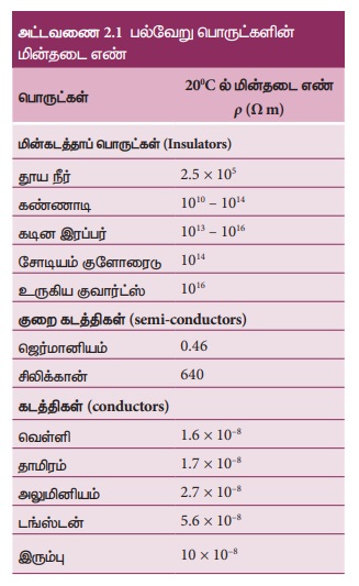 அட்டவணை 2.3 ல் பல்வேறு பொருட்களின் மின்தடை