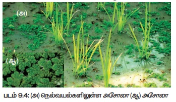 அசோலா மிக விரைவாகச் சிதைவடைந்து நெற்பயிர்களின் விளைச்சலை அதிகரிக்கச் செய்கிறது.