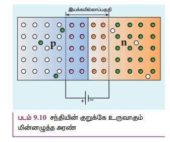 படம் 9.10 சந்தியின் குறுக்கே உருவாகும் மின்னழுத்த