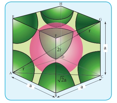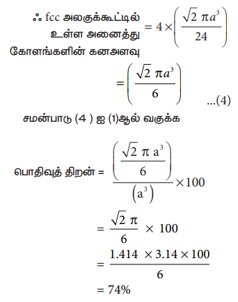 பொதிவு பின்னம் = (πa3/6) / (a3 ) × 100= 100π / 6