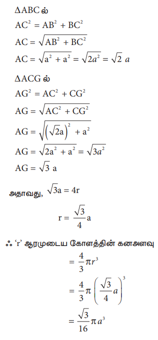 ஃ ‘r’ ஆரமுடைய கோளத்தின் கன அளவு