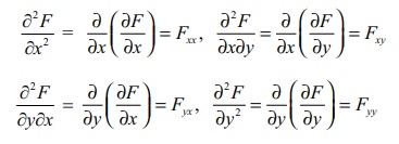 ∂2F / ∂x2 = ∂/∂x (∂F/∂x) = Fxx’ ∂2F / ∂x ∂y = ∂/ ∂x (∂F/∂y) = Fxy’