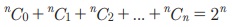 குறிப்பு: X என்பது n உறுப்புகளைக் கொண்ட ஒரு கணம் எனில், r உறுப்புகளைக் கொண்ட X-ன் உட்கணங்களின் எண்ணிக்கை nCr ஆகும். r = 0, 1, 2, ...... n என nCr இல் பிரதியிட, X-ன் உட்கணங்களின் எண்ணிக்கை கிடைக்கும். எனவே, மேற்குறிப்பிட்ட முற்றொருமையைக் கொண்டு n உறுப்புகள் கொண்ட ஒரு கணமானது 2n உட்கணங்களைப் பெற்றிருக்கும் என்பதை அறியலாம்.