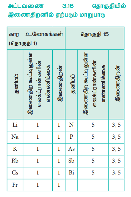 அட்டவணை 3.16 தொகுதியில் இணைதிறனில் ஏற்படும் மாறுபாடு
