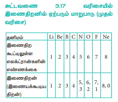 அட்டவணை 3.17 வரிசையில் இணைதிறனில் ஏற்படும் மாறுபாடு (முதல் வரிசை)