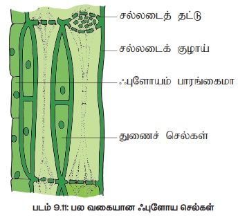இடைய சைட்டோபிளாச இணைப்புகள் மூலம் பராமரிக்கப்படுகின்றன. இந்தச் செல்கள் சல்லடை குழாய்களுக்குள்