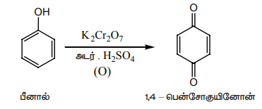 பீனால், அடர் H2SO4 அமிலம்கலந்த K2Cr2O7 முன்னிலையில் காற்றில் ஆக்சிஜனேற்றம் அடைந்து 1,4 பென்சோகுயினோன் சேர்மத்தினை தரும்.