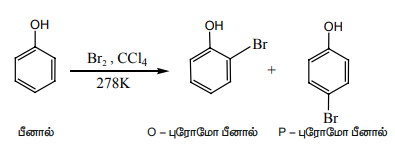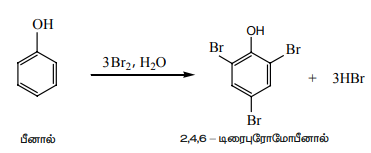 பீனால் புரோமின் நீருடன் வினைப்பட்டு 2,4,6 டிரை புரோமோ பீனால் எனும் வெண்மை நிற வீழ்படிவை தருகிறது.