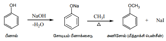 பீனாலின் காரக்கரைசல் ஆல்கைல் ஹாலைடுகளுடன் வினைப்பட்டு ஈதர்கள் தருகிறது. ஆல்கைல் ஹாலைடு காரமுன்னிலையில் பீனாக்ஸைடு அயனியால் கருகவர் பதிலீட்டு வினைகளுக்கு உட்படுகிறது.