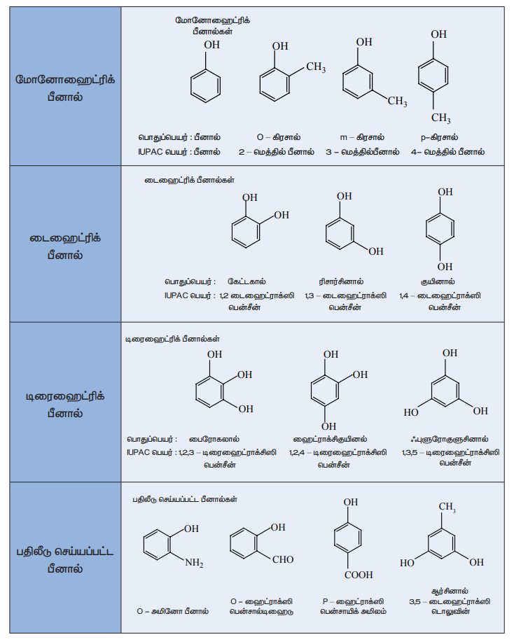 அட்டவணை : பீனால்கள் வகைப்பாடு