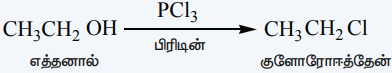 வினைவழிமுறை : பாஸ்பரஸ் ட்ரைகுளோரைடின் மீதான SN2 வினை குளோரோ ஈத்தேன்.