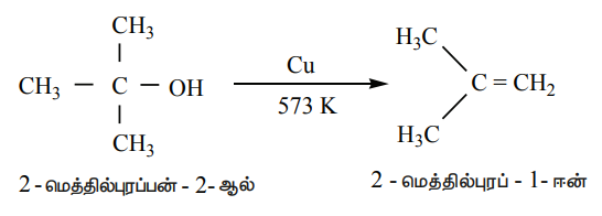 மூவிணைய ஆல்கஹால்கள் நீர் நீக்க வினைக்கு உட்பட்டு ஆல்கீன்களைத் தருகின்றன.