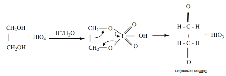 உ) HIO4 அல்லது LTA (லெட் டெட்ரா அசிட்டேட்) உடன் ஆக்சிஜனேற்றம் செய்யும் போது பார்மால்டிஹைடு மற்றும் பார்மிக் அமிலம் உருவாகிறது.