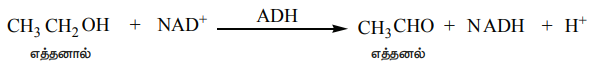 ஆல்கஹாலை நச்சு நீக்கம் செய்ய, கல்லீரலானது ஆல்கஹால் டீஹைட்ரோஜெனேஸ் (ADH) எனும் நொதியினை உற்பத்தி செய்கிறது. விலங்கினங்களில் காணப்படும் நிகோடினமைடு அடினைன் டைநியூக்ளியோடைடு (NAD) ஆக்சிஜனேற்றியாக செயல்படுகிறது. மேலும் ADH ஆனது நச்சுத் தன்மையுடைய ஆல்கஹாலை நச்சுத் தன்மையற்ற ஆல்டிஹைடுகளாக ஆக்சிஜனேற்றம் அடையச் செய்ய வினைவேகமாற்றியாக செயல்படுகிறது.