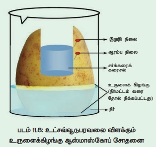 5. சோதனை முடிவுகளை ஆசிரியரிடம் கலந்தாய்வு செய்ய வேண்டும் மேற்கண்ட சோதனையினை உருளைக் கிழங்கிற்கு பதிலாக பீட்ரூட் அல்லது சுரைக்காயினை வைத்து செய்து பார்த்து அதன் முடிவுகளை ஒப்பிட்டு விவாதிக்கவும்.