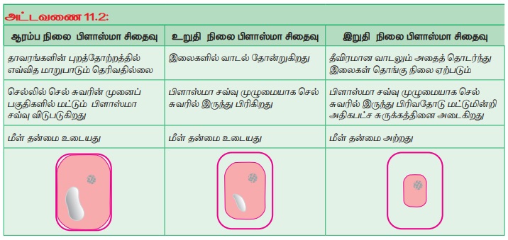 நீர் மூலக்கூறுகள் வெளியேறுவதால் செல்லின் புரோட்டோபிளாசம் சுருங்கி செல் சவ்வானது