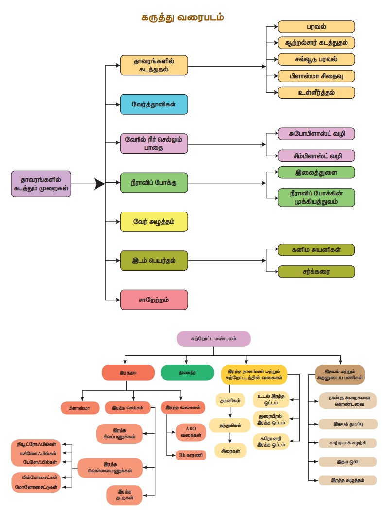 தாவரங்களின் கடத்துதல் மற்றும் விலங்குகளின் சுற்றோட்டம் - நினைவில் கொள்க | 10th Science : Chapter 14 : Transportation in Plants and Circulation in Animals
