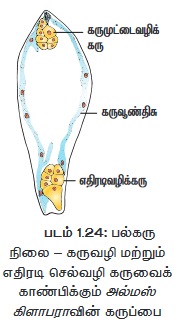 - அரிஸ்டோலோக்கியா, எதிரடிச் செல்கள் - அல்மஸ், கருவூண்திசு - பலனோபோரா)