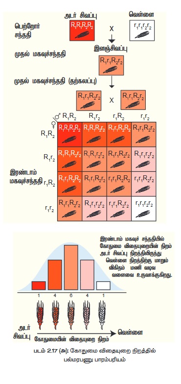 தாவரவியல்: பாரம்பரிய மரபியல் - கோதுமையில் பல்மரபணு பாரம்பரியம் (விதையுறை நிறம்) | 12th Botany : Chapter 2 : Classical Genetics