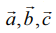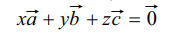 ஆகியவற்றை நிலை வெக்டர்களாக கொண்ட புள்ளிகள் A, Bமற்றும் C ஒரே கோட்டில் அமையத் தேவையான மற்றும் போதுமான நிபந்தனை x, y, z, என்ற மெய்யெண்கள் அனைத்தும் பூஜ்ஜியமில்லாமல் x + y + z = 0 மற்றும்