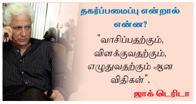 "வாசிப்பதற்கும், விளக்குவதற்கும், எழுதுவதற்கும் ஆன விதிகள்". - ஜாக் டெரிடா