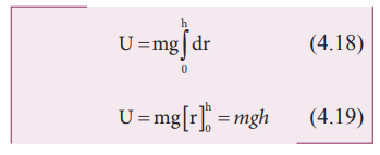 படம் 4.8 இல் (m) நிறையுள்ள ஒரு பொருள் தரையிலிருந்து h உயரத்திற்கு புவியீர்ப்பு விசைக்கு எதிராக நகர்த்தப்படுவதாகக் கருதுவோம்.