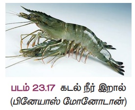 மற்றும் பினேயஸ் மோனோடான் கடல் நீரில் வளர்க்கப்படுகின்றன.