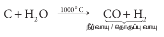 மற்றொரு முறையில் செஞ்சூட்டு வெப்பநிலைக்கு வெப்பப்படுத்தப்பட்ட கல்கரியின் மீது, நீராவியைச் செலுத்தி கார்பன் மோனாக்சைடும், ஹைட்ரஜனும் பெறப்படுகின்றன. இம்முறையில் பெறப்படும் வாயுக்கள் அடங்கிய கலவை நீர் வாயு எனப்படுகிறது. இதனை தொகுப்பு வாயு எனவும் அழைக்கலாம். மெத்தனால் மற்றும் சில எளிய ஹைட்ரோகார்பன்களைப் போன்ற கரிமச்சேர்மங்களைத் தொகுப்பு முறையில் தயாரிக்க இவ்வாயுக்கலவை பயன்படுவதால் இதனை தொகுப்புவாயு என்று அழைக்கின்றோம்.