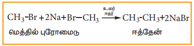 உலர் ஈதரில் உள்ள ஹாலோ உலோக ஆல்கேன் கரைசலை சோடியத்துடன் வினைப்படுத்தும்போது, உயர் ஆல்கேன்கள் உருவாகுகின்றன. இரட்டைபடை எண்ணிக்கையில் உள்ள உயர் ஆல்கேன்களைத் தயாரிக்க இம்முறைப் பயன்படுகிறது.