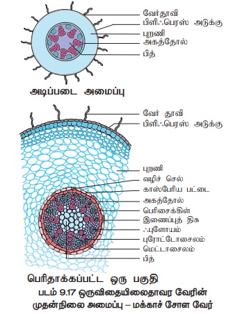 தாவர வேரின் முதன்நிலை அமைப்பு-மக்காச் சோள வேர்