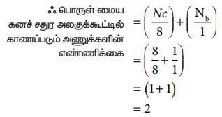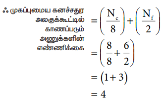 ஃஒரு எளிய கனச் சதுர அலகுக்கூட்டில் காணப்படும் அணுக்களின் எண்ணிக்கை = (NC/8)