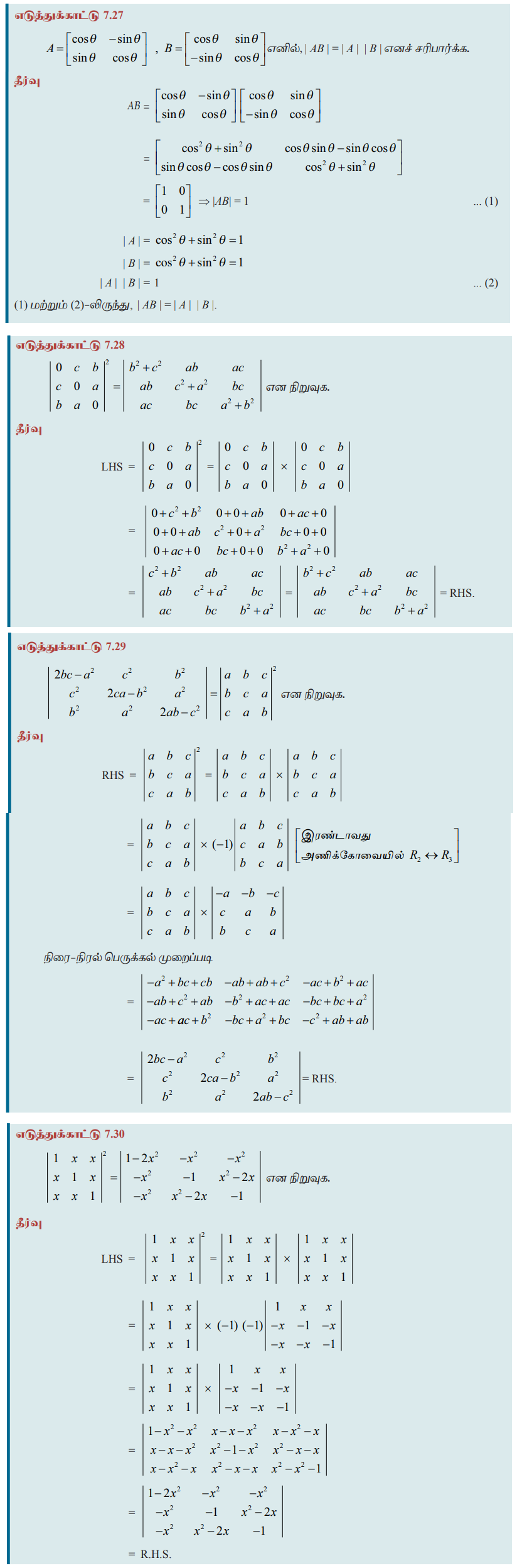 (ii) அணிகளில் பொதுவாக AB≠ BA என இருப்பினும் |AB| = | BA | என்பது எப்போதும் உண்மையாகும்.
