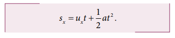 ‘t’ நேரத்தில் எறிபொருள் கடந்த கிடைத்தளத் தொலைவு x = uxt + 1/2 at2.