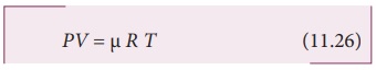இங்கு P-அழுத்தம், V-பருமன், T-வெப்பநிலை, μ-மோல்களின் எண்ணிக்கை, R - பொது வாயு மாறிலி, கொடுக்கப்பட்ட நிறை கொண்ட மூலக்கூறுக்கு சமன்பாடு (11.26)யை கீழ்க்கண்டவாறு எழுதலாம்.
