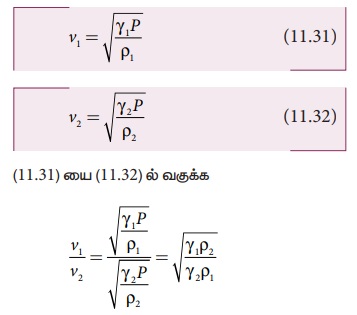 சம வெப்பநிலை, அழுத்தத்தில் உள்ள இரு வாயுக்களை கருதுக . அவற்றின் அடர்த்தி மட்டும் வெவ்வேறு என்க. அந்த இரு வாயுக்களின் வழியே ஒலியின் திசைவேகங்கள் முறையே,
