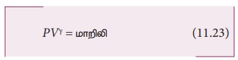 இங்கு, K1 காற்றின் வெப்பநிலைமாறா பருமக்குணகம். சமன்பாடு (11.21) யை (11.16), இல் பிரதியிட, காற்றில் ஒலியின் திசைவேகம்