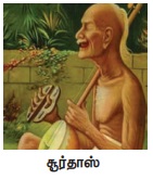 அக்பரின் அவையில் இடம் பெற்றிருந்த சூர்தாஸ் ஆக்ராவின் பார்வைத் திறனற்ற பாடகன் எனப் பலராலும் அறியப்பட்டவர். சூர்தாஸ் தில்லி சுல்தானியர் காலத்து, வைணவப் போதகரான வல்லபாச்சாரியாரின் சீடர் என நம்பப்படுகிறது. வல்லபாச்சாரியார் புஷ்தி மார்க்கத்தை (அருள் பாதை) நிறுவியவராவார். சூர்தாஸ் அன்பெனும் மதத்தையும் தனிப்பட்ட கடவுளிடம் பக்தியோடிருப்பதையும் போதித்தார். கடவுள் கிருஷ்ணரைக் குறித்து இந்தி மொழியில் உணர்வு பூர்வமான பாடல்களை இயற்றினார். சூர்தாஸின் கவிதைகளில் கிருஷ்ணருடைய ‘பாலலீலா’ முக்கியக் கருப்பொருளாக விளங்கியது. அவருக்குக் கிருஷ்ணர் தெய்வீகமானவர். அவரைப் பொருத்த அளவில் காதல் என்பது உணர்வுபூர்வமான கருப்பொருளாகும். பிருந்தாவனத்தில் கிருஷ்ணர் மீது கோபியர் கொண்ட கட்டுப்படுத்த இயலாத காதலை அது பிரதிநிதித்துவப்படுத்துகிறது என்றார். கோபியர் வெளிப்படுத்திய காதலின் தீவிரம் என்பது ஒரு தெய்வீக ஆன்மாவின் மேல் மனித ஆன்மா கொண்டிருக்கும் இயற்கையான கவர்ச்சியின் வெளிப்பாடென்றார். சூர்சாகர், சூர்சரவளி, சாஹித்ய லஹரி ஆகியன அவருடைய முக்கியப் படைப்புகளாகும். அவருடைய மாபெரும் படைப்பான சூர்சாகர் அல்லது சூர் சமுத்திரம் கிருஷ்ணர் பிறந்ததிலிருந்து மதுராவுக்கு புறப்படும் வரையிலான கதைகளைக் கொண்டுள்ளது.