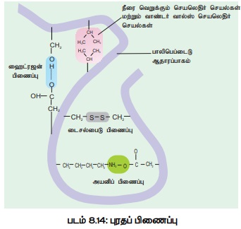 நான்கு விதமான வேதிப்பிணைப்புகள் புரதங்களில் உள்ளன (படம்: 8.14).