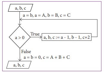 தொடர்பு a = b = 0 மற்றும் C = A+B+C ஆகும். இதனுடைய நிரல் நெறிமுறைக்கு
