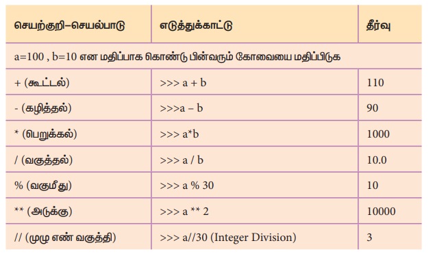 பைத்தான் - பைத்தான் மையக் கருத்துருக்கள் பைத்தான் அறிமுகம் - மாறிகள் மற்றும் செயற்குறிகள்: பின்வரும் கேள்விகளுக்கு பதில் அளிக்கவும் | 12th Computer Science : Chapter 5 : Core Python : Python Variables and Operators