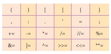 (iv) வரம்புக்குறிகள்: பைத்தான், குறியீடு அல்லது குறியீடுகளின் தொகுப்பை,