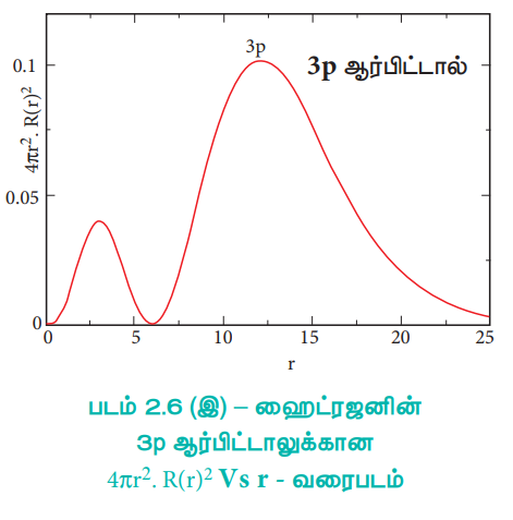 படம் 2.6 (இ) – ஹைட்ரஜனின் 3p ஆர்பிட்டாலுக்கான 4πr2 . R(r)2 Vs r - வரைபடம்