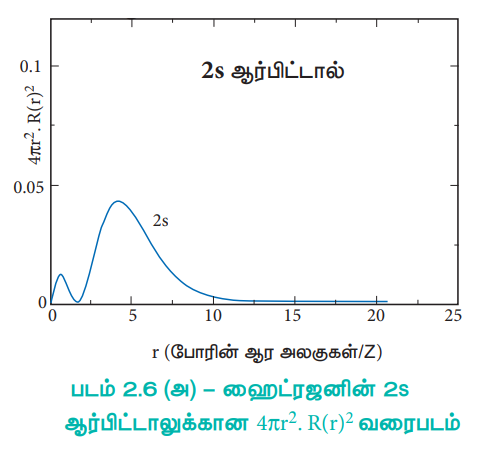 படம் 2.6 (அ) - ஹைட்ரஜனின் 2s ஆர்பிட்டாலுக்கான 4πr2 . R(r)2 வரைபடம்