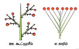 அ. காரிம்ப்: இதில் குட்டையான காம்புடைய மலர்கள் மஞ்சரித்தண்டின்