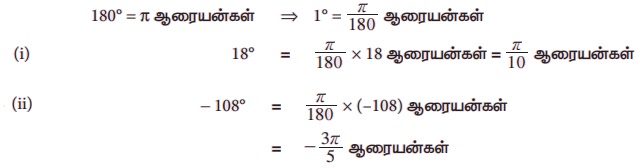 (vi) 1 ஆரையன் = 57°17'45" மற்றும் 1° = 0.017453 ஆரையன்