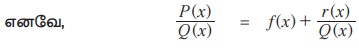 பகுதி P(x)-ன் படி Q(x)-ன் படிக்குச் சமமாகவோ அல்லது அதைவிடப் பெரியதாகவே இருப்பின் P(x) = f(x) Q (x) + r(x) என எழுதலாம். இங்கு , r(x) = 0 அல்லது r (x)-ன் படி Q(x)-ன் படியைவிடக் குறைவாக இருக்கும்.